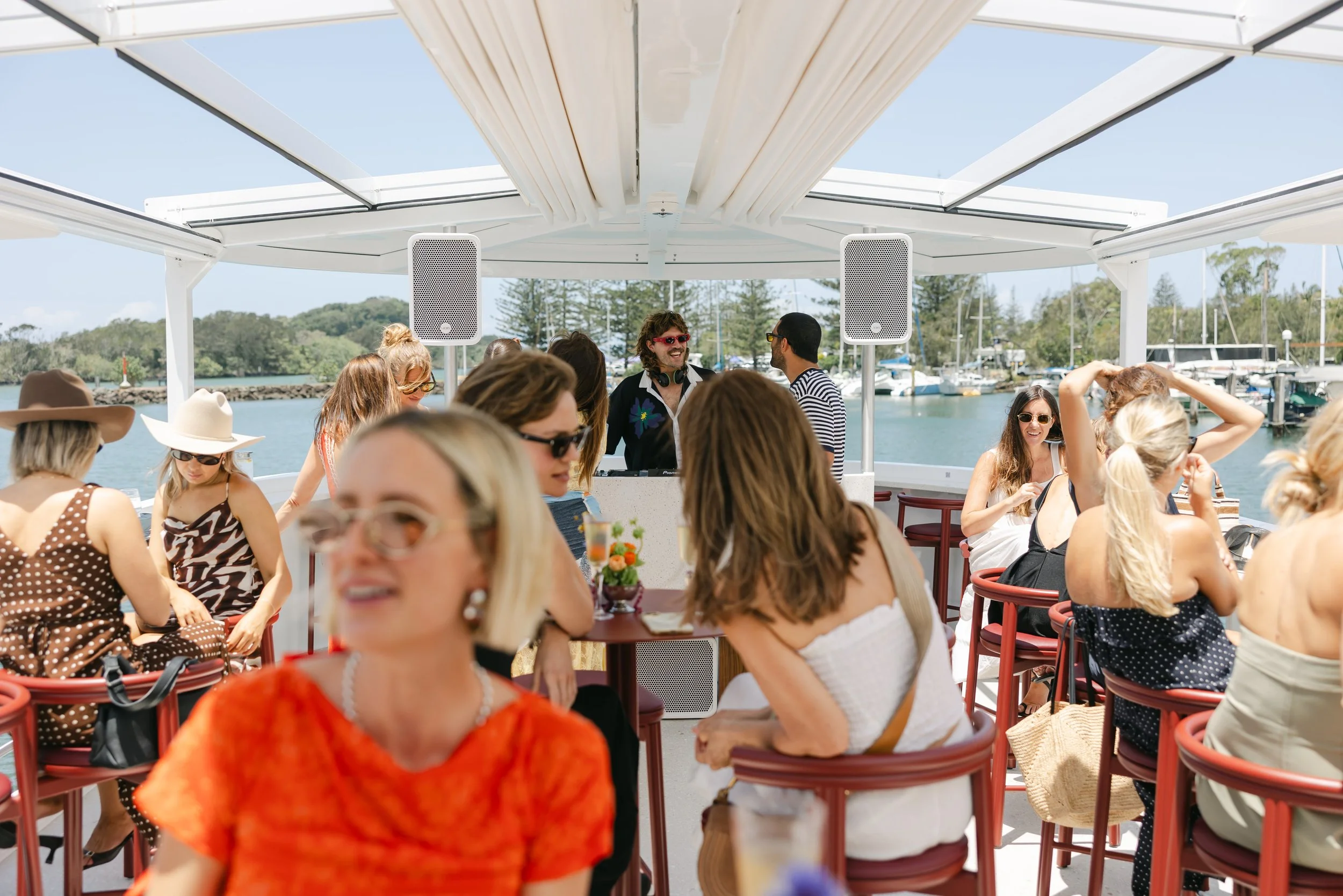 For up to 70 people, Byron Bay's only private charter Luxury experience. Welcome aboard MV Jasmine — A Mediterranean-inspired, adults-only floating cocktail bar set on the Bruns River with curated music, catering and handcrafted cocktails.